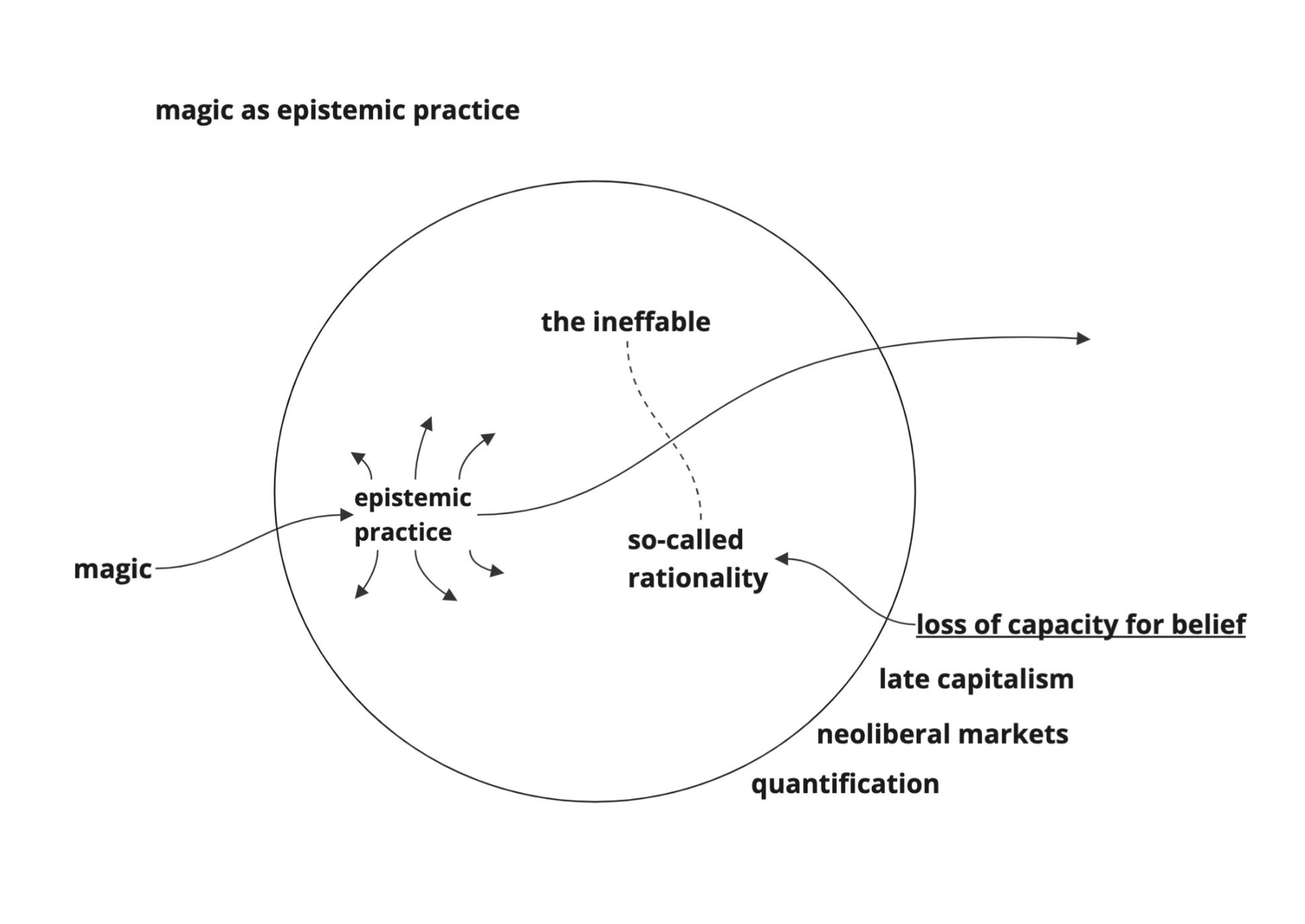 A diagram made for the minor tech workshop by Sasha Anikina and Yasemin Keskintepe, on the topic of their paper on (techno)magic.