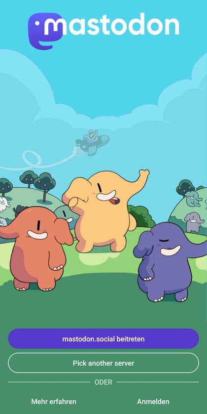 [[File:Masto-mobile.jpg|thumb| | [[File:Masto-mobile.jpg|thumb|420px|Figure 4: Screenshot of the sign-up process start on the official Mastodon app (31.05.2023).]] | ||