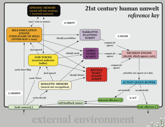 Figure 2: "21st century human wmwelt" diagram by Ian Cheng, from Emissaries Guide, 2017. Image courtesy of the artist.