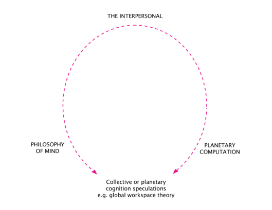 Such huge scalar leaps between the ‘planetary’ scales of contemporary computation and the functions traditionally ascribed to ‘mind’ might reasonably concern the ‘minor’ technologist, as well as a broader base of critics sceptical of such conceptual manoeuvres, given that it makes technology the domain in which these highly abstract and sometimes obtuse philosophical debates are being conducted. But might there be a different level of granularity from which we can build theories of human-computational interactivity, and through which the jump from the processes of ‘mind’ and the planetary-scale computational infrastructure which demands theorisation, can be linked or grounded? The ‘interpersonal’ has been briefly considered elsewhere by Jeremy Bendik-Keymer (2020) as a response to the planetarisation of thought, but here is forwarded as a mediator and starting point for course correcting this horseshoeing trend amongst the art & technology field.
