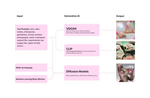 By the 2010s, the creation of music and images began to take on ever-stranger forms of beauty. If you look into the excessively auto-tuned voices in pop music or the hands generated by generative algorithms, you will find a strange aesthetic fluidity: "Identities will be corrupted. Believe in the mystery of digital DNA reconfiguration. Allow your bones to crush, let your brain grow out of your skull. It's time we accept that our physicality is just a mere fantasy." (DB) Xeno-tuning techniques specifically allow us to modify a deep learning model for generating images trained on a dataset of normative bodies and redesign them to generate other types of entities. To this end, we have found various forms of xeno-tuning which are described below.